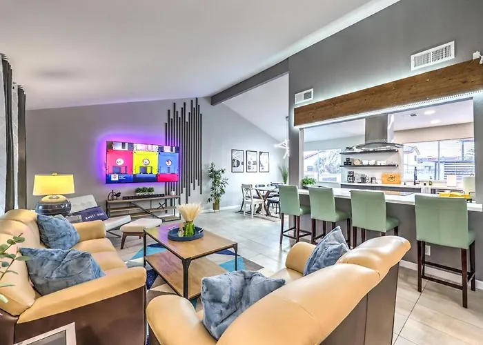 This Las Vegas holiday home in the South of the Las Vegas Strip district is situated within 6 km of the Titanic: The Artifact Exhibition and approximately 7 km from such shopping places as the Hershey's Chocolate World. The nearby cultural attractions include the National Atomic Testing Museum, which is about a 15-minute ride away. Elysian Villa is 4.7 km from family-friendly places such as the public Shark Reef.